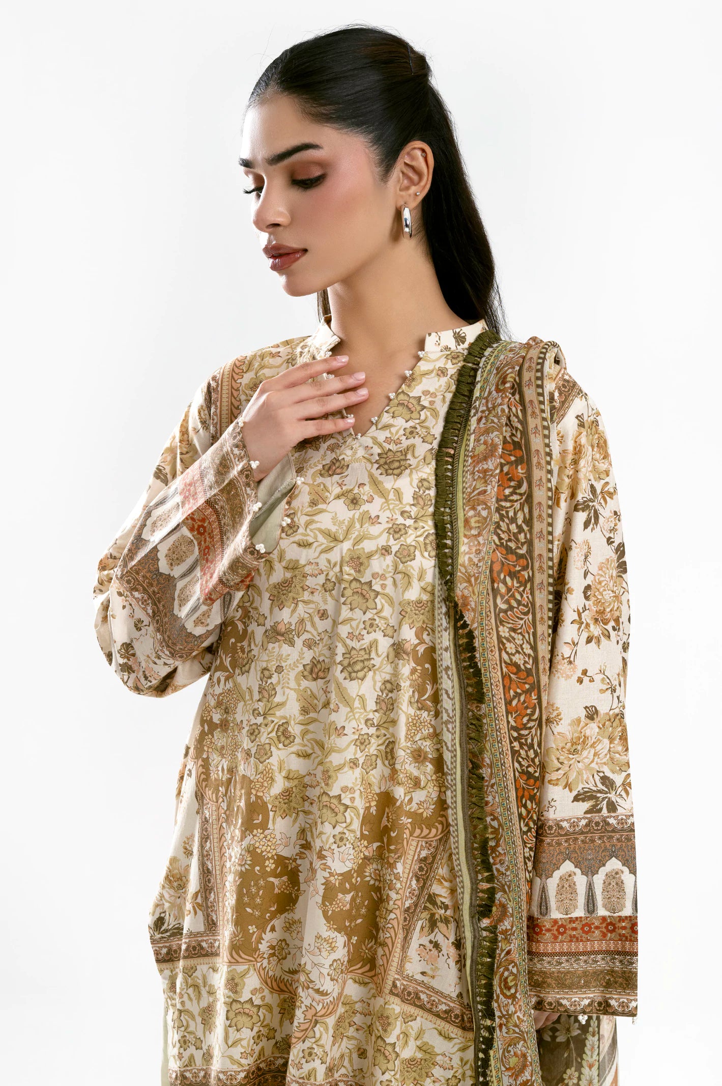 LAWN PRINTED SHIRT (1.75 MTR)CHIFFON PRINTED DUPATTA (2.5 MTR)CAMBRIC DYED TROUSER (1.6 MTR)