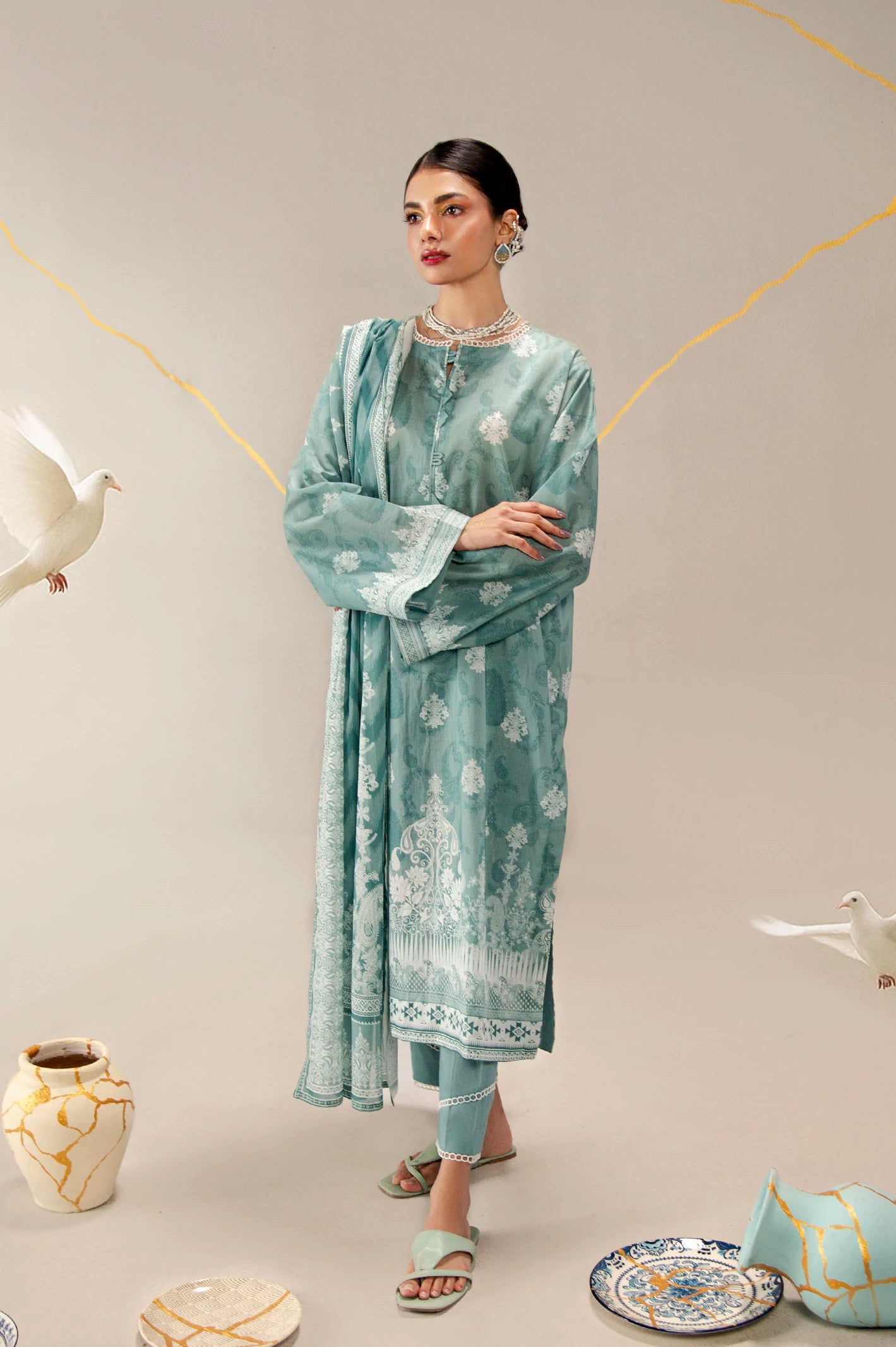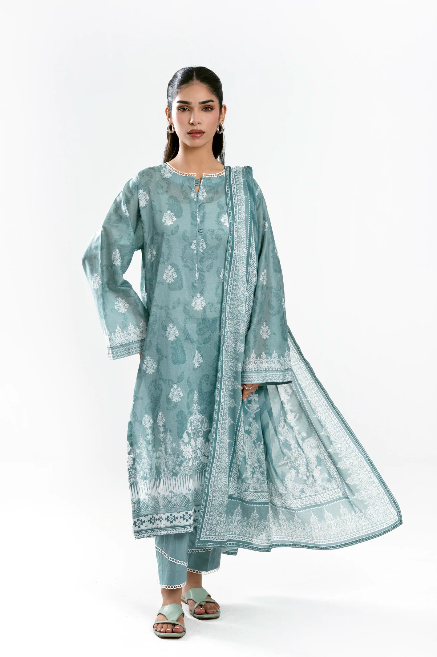 Printed Lawn Turquoise Unstitched 3Pc