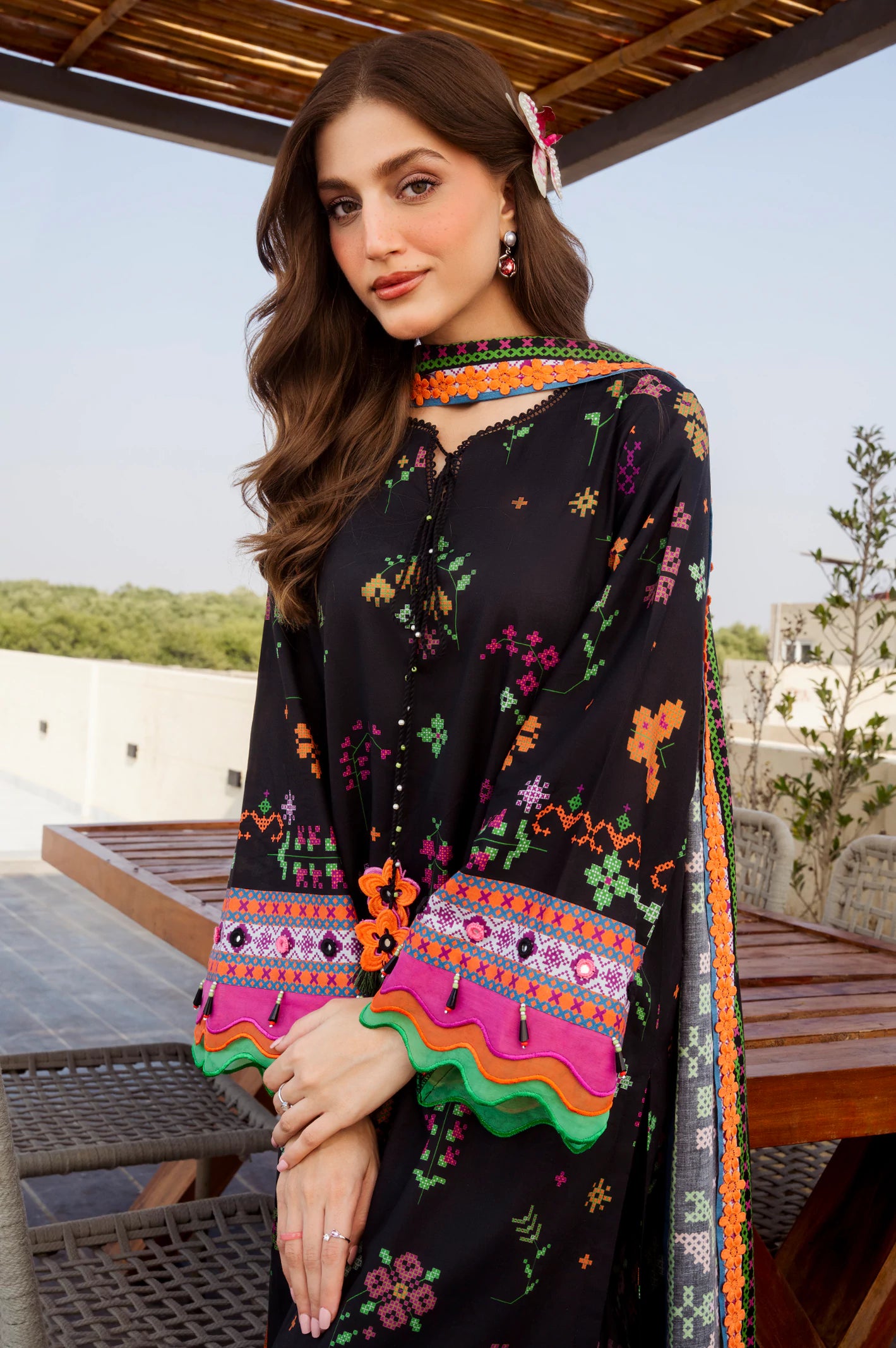 Printed Lawn-Black Unstitched 3PC